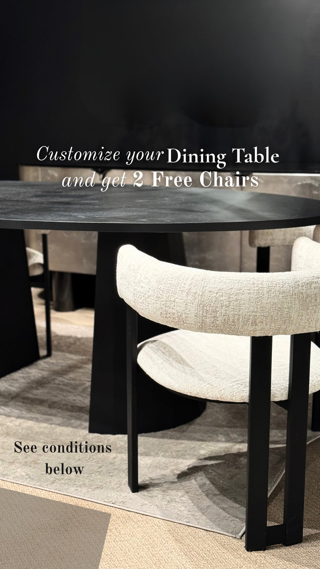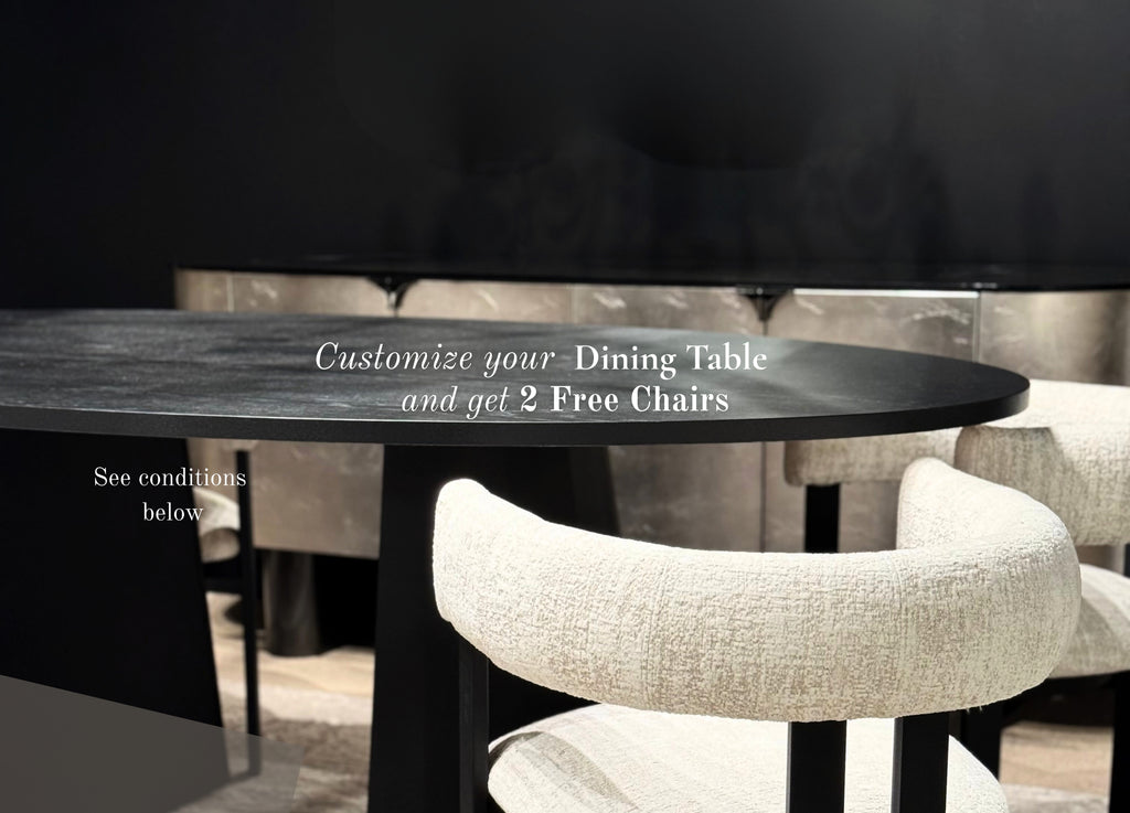 * "Host in Style" customize your table and receive two free chairs promotion applies to select items only, includes the Sophia and Lia dining tables. The promotion allows the Sophia dining table to be paired with the Atiana chair and the Lia dining table to be paired with either the Glasgow, Gladys, Jensen, or Charlotte chair.