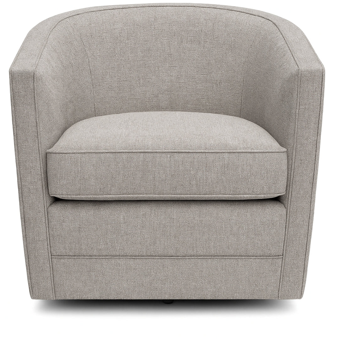 The Samosir Swivel Chair brings modern comfort and sculptural style to any living space. Its low profile design and smooth swivel base create an effortless sense of movement while maintaining a clean, contemporary look. The gently curved silhouette embraces the body, offering a supportive and inviting seating experience that encourages relaxation. Generous cushioning enhances its comfort, while the tailored shape maintains a refined presence that suits both casual and sophisticated interiors. Whether placed beside a sofa, paired in a reading corner, or used as a standalone statement piece, the Samosir Chair blends seamlessly into a variety of arrangements. Its versatile form and fluid lines make it an ideal choice for those seeking functional elegance without compromising on comfort. With its modern profile and graceful rotation, this swivel chair elevates everyday lounging while adding a touch of understated luxury to the room.