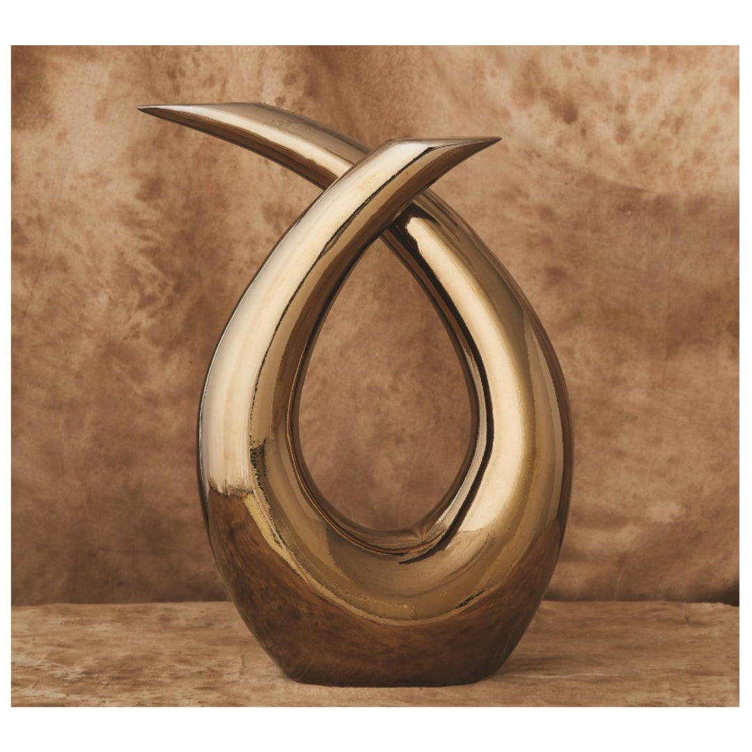 The Vestmanna Loop Sculpture in bronze is a refined decorative accent designed for discerning interiors, where art and design coexist effortlessly. Its looping silhouette suggests an endless ribbon suspended in motion, creating an intriguing play of negative space and sculptural presence. The rich bronze finish offers a gentle glow, catching the light in a way that highlights every curve and contour without overwhelming the room. Perfectly scaled for a console, credenza, cocktail table, or bookshelf, it adds a sense of artistry and quiet luxury to living rooms, dining spaces, offices, or primary suites. Styled on its own, it reads as a bold, contemporary statement; paired with books, candles, or glass objects, it becomes part of an elevated vignette. Ideal for modern, transitional, and sophisticated eclectic décor, the Vestmanna Loop Sculpture is the kind of finishing touch that makes a space feel thoughtfully curated and beautifully complete.