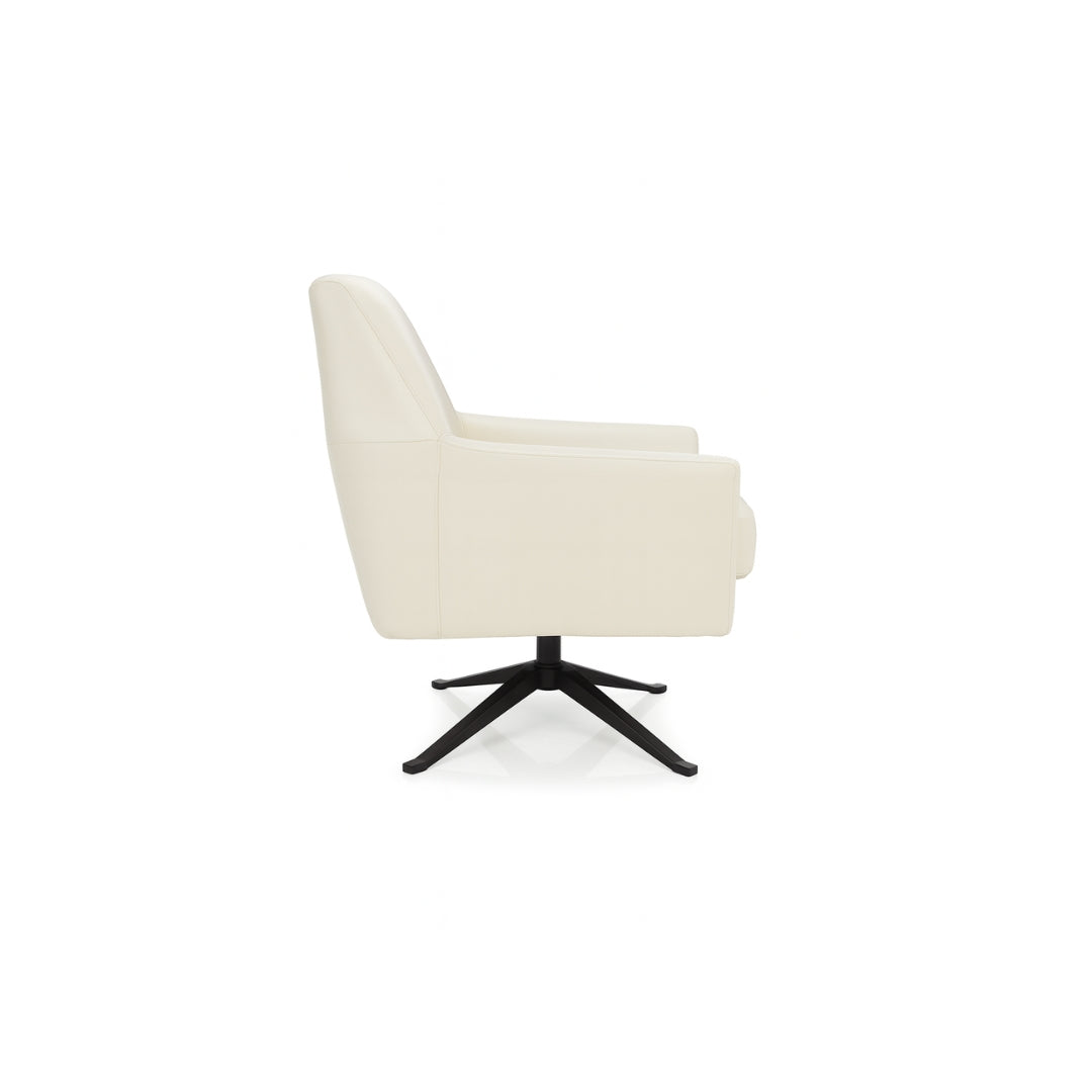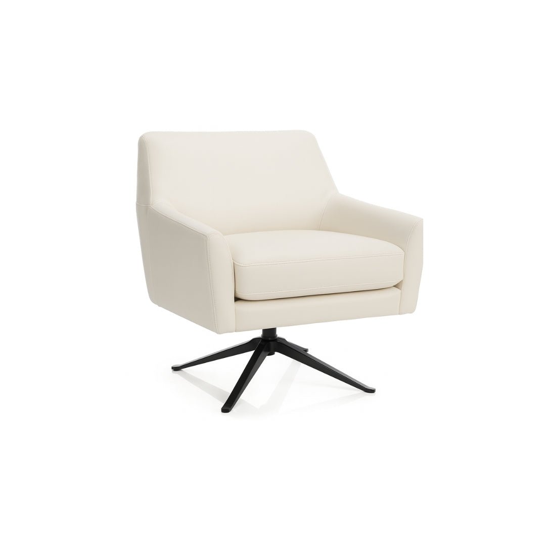 The Bologna Lounge Chair brings together refined comfort and contemporary elegance, offering a sophisticated seating experience for modern interiors. Its sleek silhouette is supported by a discreet metal swivel base in a smooth black finish, giving the piece both stability and effortless movement. The chair’s sculpted back and gently flared arms create an enveloping shape that invites relaxation while maintaining a tailored, architectural presence. Crafted with quality in mind, the design incorporates sinuous springs in the back and durable webbing in the seat, ensuring long-lasting support and resilience. Soft foam cushioning enhances comfort, with options available for firmer seating preferences. The tight back and clean box seat feature subtle, invisible stitching that emphasizes the chair’s minimalist appeal. Whether placed in a living room, reading nook, or executive office, the Bologna Lounge Chair exudes quiet luxury and timeless style, making it an exceptional addition to any curated space.