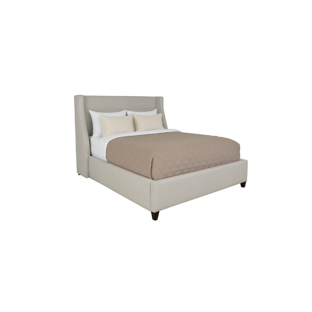 The Waylon Bed embodies refined elegance and thoughtful design, crafted to elevate contemporary living spaces. Offered in King, Queen, Double, and Single sizes, each frame is built from robust metal with supportive wood slats folding in half for larger sizes to allow ease of handling. The Single size features a seamless, one piece structure for added simplicity. A standout headboard showcases three horizontal, foam padded panels, wrapped in luxurious Campbell Stone fabric, delivering both visual appeal and plush comfort. The Clive Dark legs provide a rich contrast, while a central black metal leg reinforces strength and stability. Complete with floorboards, footboard, headboard, side rails, and all necessary hardware, every component is designed with precision and purpose. The Waylon Bed balances modern aesthetics with exceptional craftsmanship, making it a sophisticated centerpiece in any luxury bedroom setting.