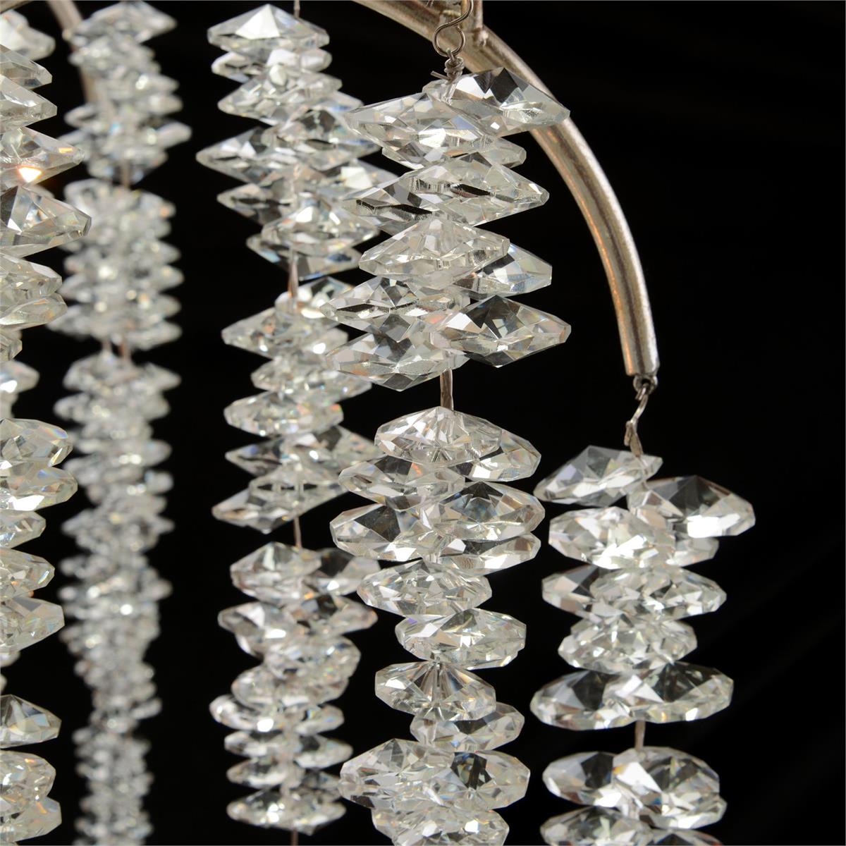 The Vivian Chandelier captures the essence of timeless luxury and refined brilliance. Its cascading silhouette, reminiscent of a shimmering waterfall, features delicate crystal tiers that refract light with exquisite clarity. Suspended from an antique silver leaf frame, this statement piece radiates elegance and sophistication. Six candelabra style bulbs provide a warm, inviting glow, enhancing both classic and contemporary interiors. Each crystal is meticulously placed to create depth, movement, and an aura of effortless grandeur. The antique silver finish lends a subtle vintage charm, while the cascading design adds a modern touch of drama. Perfect for grand dining spaces, elegant foyers, or refined living rooms, the Vivian Chandelier transforms light into art creating an atmosphere that is both captivating and serene. A true centerpiece of grace and glamour, it embodies the perfect harmony of craftsmanship and style.